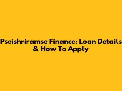 Pseishriramse Finance: Loan Details & How To Apply