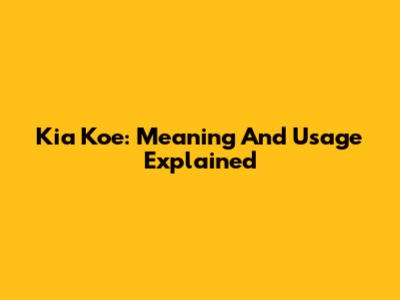 Kia Koe: Meaning And Usage Explained