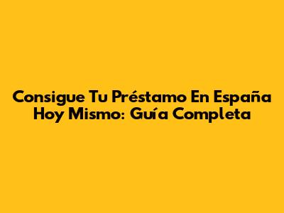 Consigue Tu Préstamo En España Hoy Mismo: Guía Completa