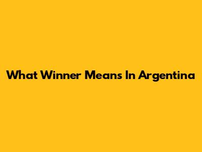 What 'Winner' Means In Argentina