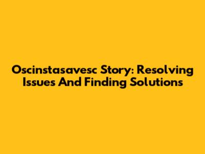 Oscinstasavesc Story: Resolving Issues And Finding Solutions
