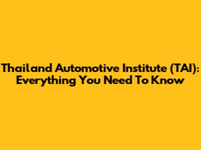 Thailand Automotive Institute (TAI): Everything You Need To Know