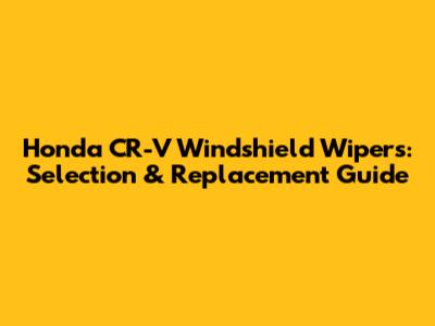 Honda CR-V Windshield Wipers: Selection & Replacement Guide