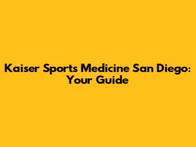 Kaiser Sports Medicine San Diego: Your Guide
