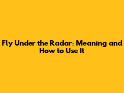 What Does "Fly Under the Radar" Mean?