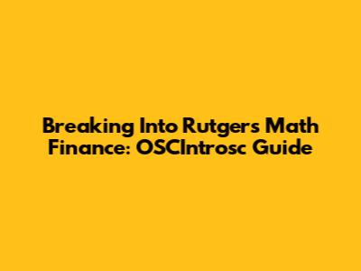 Breaking Into Rutgers Math Finance: OSCIntrosc Guide