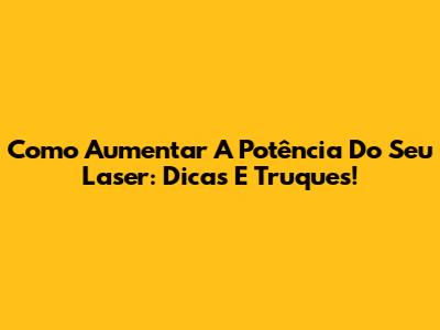 Como Aumentar A Potência Do Seu Laser: Dicas E Truques!
