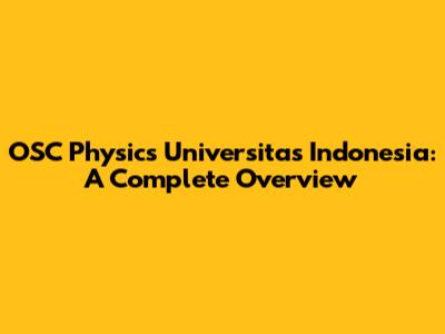 OSC Physics Universitas Indonesia: A Complete Overview