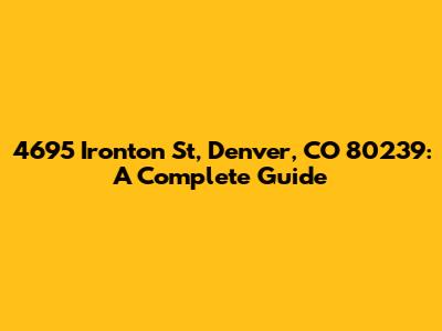 4695 Ironton St, Denver, CO 80239: A Complete Guide