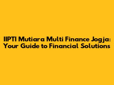 Hey guys! Are you looking for reliable financial services in Jogja? Let's dive into what IIPTI Mutiara Multi Finance Jogja has to offer. Whether you're planning a big purchase, need some extra capital for your business, or just want to explore your financing options, understanding what this institution provides is super important. So, let’s get started and explore the ins and outs of IIPTI Mutiara Multi Finance in Jogja, making sure you have all the info you need to make smart financial decisions.