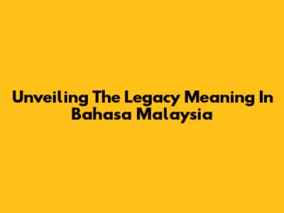 Unveiling The Legacy Meaning In Bahasa Malaysia