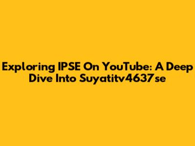 Exploring IPSE On YouTube: A Deep Dive Into Suyatitv4637se