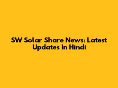 SW Solar Share News: Latest Updates In Hindi