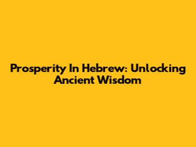 Prosperity In Hebrew: Unlocking Ancient Wisdom