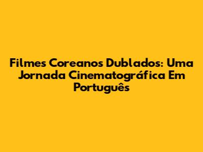 Filmes Coreanos Dublados: Uma Jornada Cinematográfica Em Português