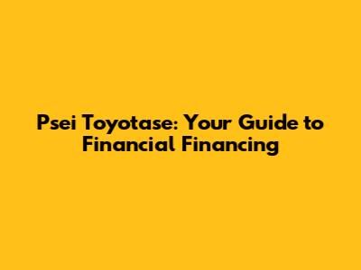 Hey guys! Ever heard of Psei Toyotase and wondered what it's all about in the financial world? Well, buckle up because we're diving deep into the world of Psei Toyotase financial financing. This is your go-to guide for understanding everything you need to know, from the basics to the nitty-gritty details.