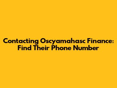 Contacting Oscyamahasc Finance: Find Their Phone Number