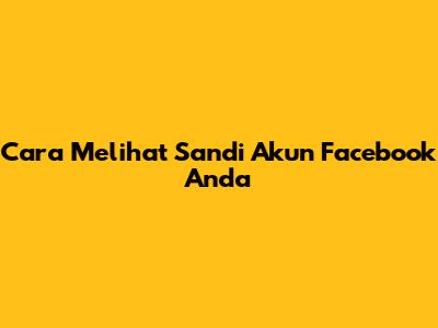 Cara Melihat Sandi Akun Facebook Anda