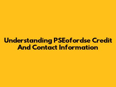 Understanding PSEofordse Credit And Contact Information