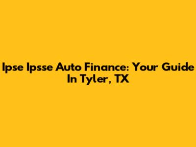 Ipse Ipsse Auto Finance: Your Guide In Tyler, TX