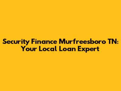 Security Finance Murfreesboro TN: Your Local Loan Expert