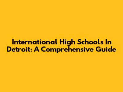 International High Schools In Detroit: A Comprehensive Guide