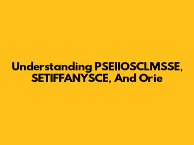 Understanding PSEIIOSCLMSSE, SETIFFANYSCE, And Orie